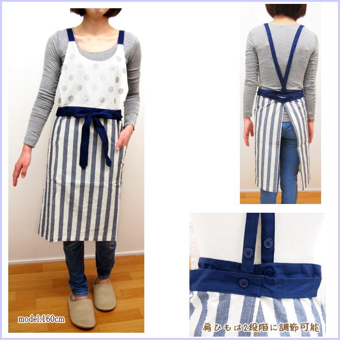 おしゃれでかわいいショート丈のエプロン ・Spec 商品名 ショートエプロン 素材 (01)〜(04)綿100% (05)〜(06)綿80%麻20% サイズ (01)〜(02)着丈約85cm 身幅約65cm (03)〜(04)着丈約85cm 身幅約85cm (05)〜(06)着丈約80cm 身幅約84cm ※サイズは当店平置き実寸サイズです。