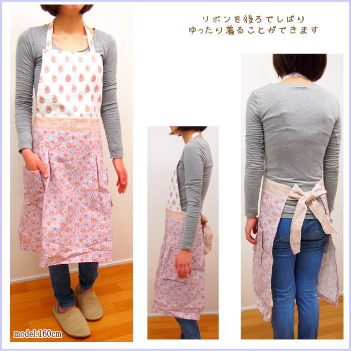 左右にポケットがあり、とっても便利◎ 綿100%なので季節を問わず、オールシーズン着用できます。
