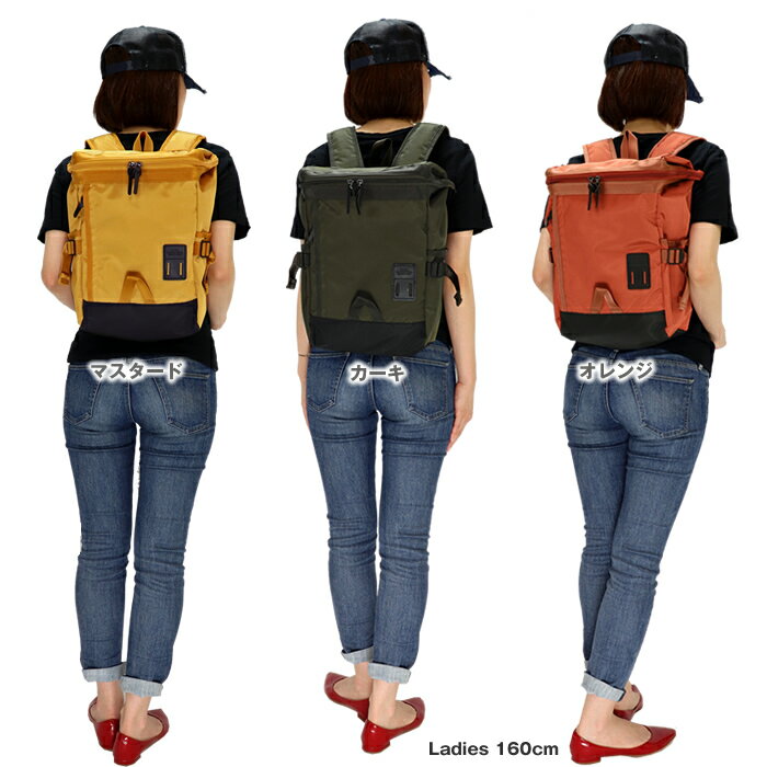 カラー ブラック、ネイビー、カーキ、オレンジ、マスタード 素 材 本体/ポリエステル(アクリルバッキング)本体以外/革附属(牛革) サイズ W24・H35・D12cm 生産国 made in china 仕様内容 開口部が大きいメンズ・レディース対応リュック。