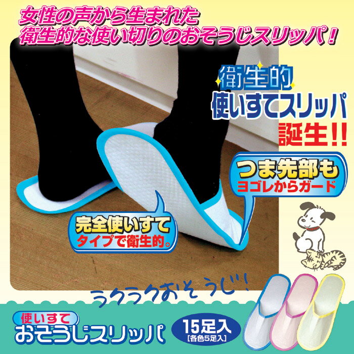 女性の声から生まれた衛生的な使い切りのおそうじスリッパ! ●完全使い切りタイプでとても衛生的!●つま先部分が覆われているので汚れからもしっかりガード!●「汚れたスリッパを何度も履くのはイヤ!」「今までのお掃除スリッパは、つま先が空いててソックスが汚れる」・・・という声から生まれたお掃除スリッパです。